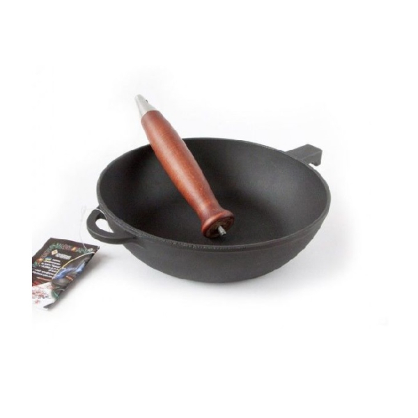 Сковорода сотейник, чугунная с деревянной ручкой 24см