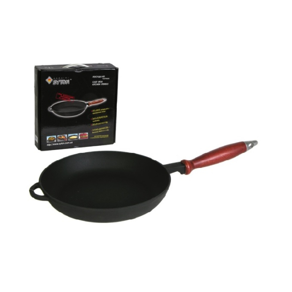 Сковорода сотейник, чугунная с деревянной ручкой 28см
