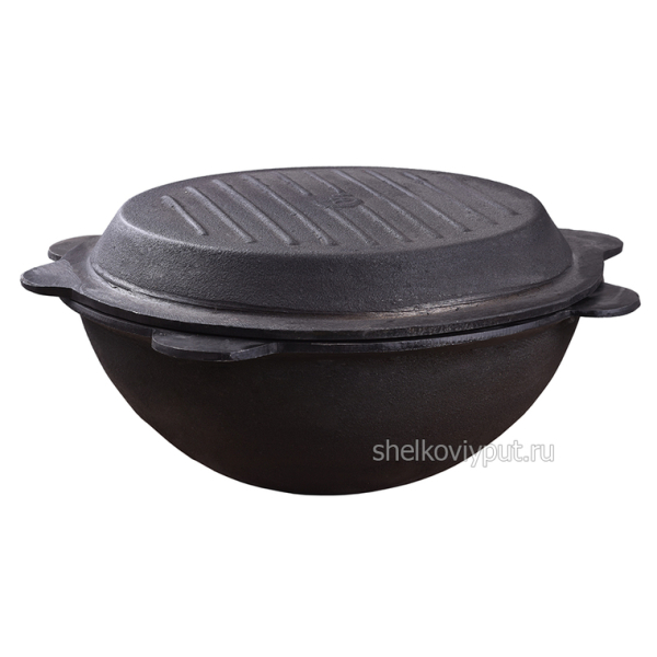 КАЗАН ЧУГУННЫЙ 12Л УЗБЕКСКИЙ (ПЛОСКОЕ ДНО) С КРЫШКОЙ-СКОВОРОДОЙ