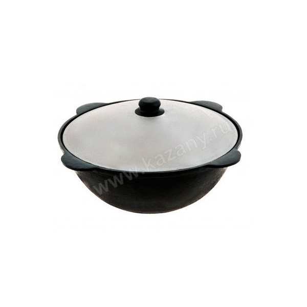 8-литровый чугунный казан с плоским дном – прекрасное решение для дома или дачи. Благодаря универсальной конструкции, такой казан можно без особых проблем разместить в специальной печи, на мангале, на подставке-треноге, а также на обычной домашней плите, в духовке или духовом шкафу. Имеет алюминиевую крышку стандартной формы с ручкой, которая очень плотно закрывает казан, располагаясь в специальном углублении. Плоское дно обеспечивает такой посуде высокую устойчивость. Для переноски имеются четыре ручки цельнолитой конструкции.