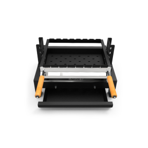- Современные – модели, в которых перфорация находится на днище жаровни появились относительно недавно. Такие конструкции считают более удобными в использовании. В нижней части находится зольник, где остаются продукты горения – пепел и зола. Зольник оснащен удобной выдвижной ручкой, чтобы его можно было легко снять и избавить от содержимого. Такие жаровни выполняются с использованием металлического колосника, имеющего вид печной решетки. Вертикальная подача обеспечивает более равномерное горение углей.
