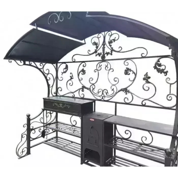 Каркас с крышей,премиум жаровня с полками для золы, печка под казан Бухара, чугунная плита с кольцами, дымоход оцинкованный