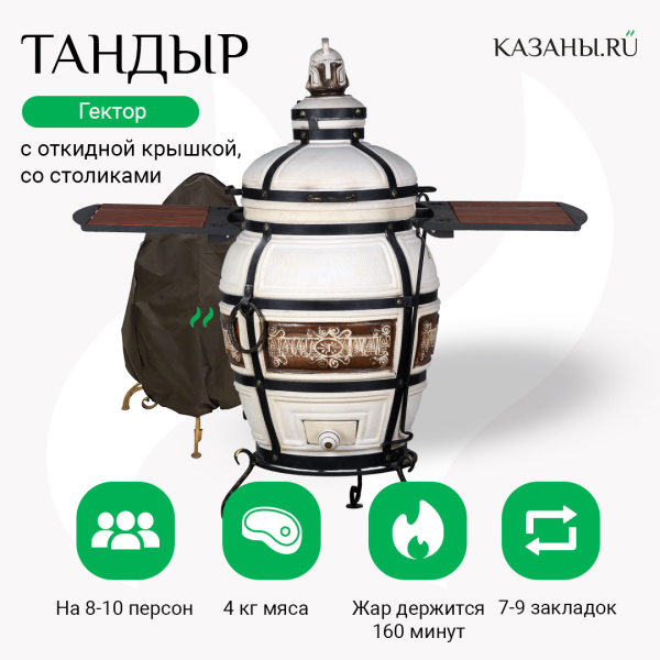 Тандыр "Гектор" - керамическая восточная печь среднего размера, предназначенная для приготовления блюд из птицы, мяса, дичи, морепродуктов, теста. Это жаровня среднего размера, она идеально подходит для приготовления пищи в частном доме.