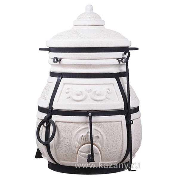 Тандыр "Скиф" - восточная печь средних размеров, изготовлена из экологичной глины. Стенки печи усилены стальным каркасом. На каркасе предусмотрены ручки в виде колец, за которые тандыр можно поднять.