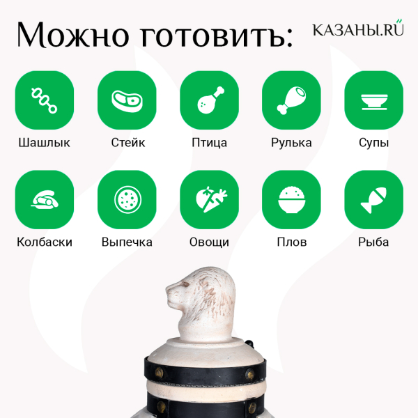 За счет аксессуаров можно расширить возможности тандыра. С помощью "тритонов" и "елочек" в печи готовят мясо с сочным гарниром. Выбрав чугунок, можно приготовить блюдо в остывающей печи. Этажерки используют для размещения камней, форм, стейков. Тандыр также отлично сочетается с казаном.