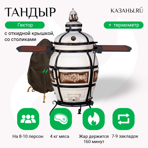 Тандыр "Гектор" - керамическая восточная печь среднего размера, предназначенная для приготовления блюд из птицы, мяса, дичи, морепродуктов, теста. Это жаровня среднего размера, она идеально подходит для приготовления пищи в частном доме.